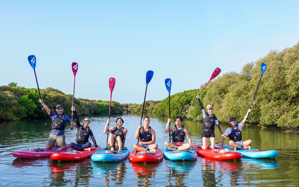 台江國家公園遊客中心旁的台江四草湖,有如台版小型亞馬遜河,在靠近出海口的古運河、鹽水溪匯流之處,是古台江內海淤積陸浮的遺跡之一,擁有完整紅樹林植群,潮間帶生態豐富,吸引許多鳥類在此覓食、棲息。有別觀光管筏,划行體驗SUP立槳,自在悠遊穿梭於紅樹林間,探索不可多得的生態秘境!